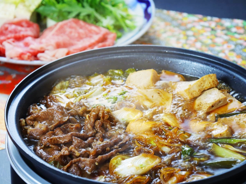 県産和牛を使った贅沢な味わいが楽しめるすき焼きです。口の中でとろけるように柔らかく、甘辛いたれとの組み合わせが絶妙です。季節に応じて新鮮な野菜や地元の食材をご提供しておりますので地元の味覚との調和を楽しめます。〆のうどんは、割り下にお肉のうまみが混ざり堪らなく美味しいです。
